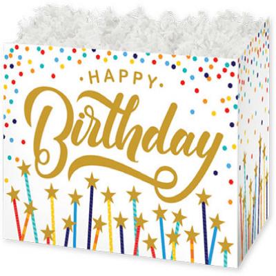 - Our theme gift basket boxes come in 2 popular sizes.- Small is made from 350gsm paperboard- Large is made from 1.66mm E-flute corrugated