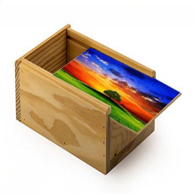- Small 6 pc minimum for blank goods - Sizes may alter +- 1/16 of an inch - Sides are constructed from Solid Pine - Tops and Bottoms from Birch Luan - STUNNING FULL COLOR UV Imprint on the Lid - Up to 16 square inch imprint area is included in the price. - For larger imprint areas see pull down menus below. - Low $37.50 setup... Low 6 Piece Minimum & No Plate Charge. - Made to order... 2-4 week production from proof approval