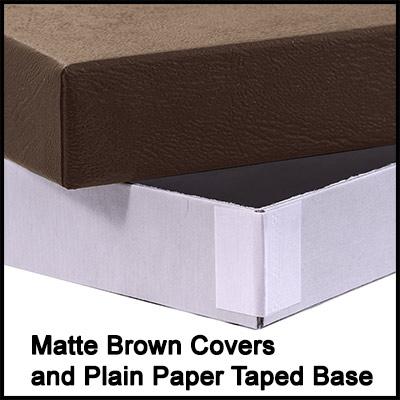 These general purpose 2 piece set-up boxes feature a embossed chocolate paper wrapped lid and a white chipboard base that has taped corners only. The lid is full height and covers the entire chipboard base. This box is a great general duty item that holds any variety of items and the larger sizes make a perfect inexpensive set-up apparel box.