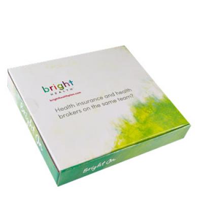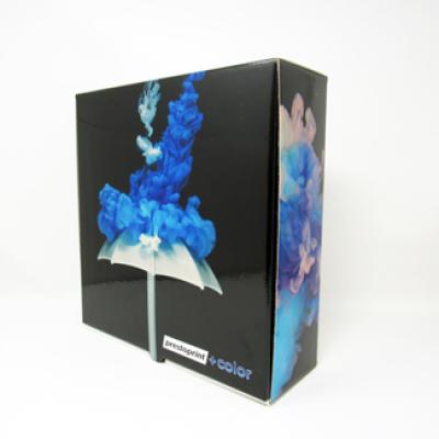Unique 4 color litho process laminated to E-flute corrugated gives stunning quality results to these shipping boxes. Plate Cost of $142.50 for new artwork
