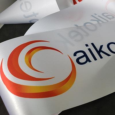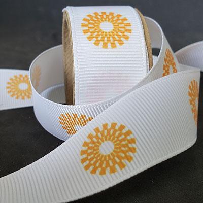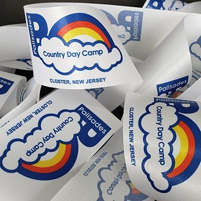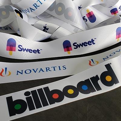 Dye-Sublimation / Heat Transfer printed ribbon allows for near perfect PMS color matching 3 materials.. Cut Edge Flora Satin (popular for ribbon cutting ceremonies), Double Face Satin & Grosgrain All printing is done on white ribbon on one side only Available with or without full bleed imprint. $67.50 setup cost per job 2 week production from proof approval